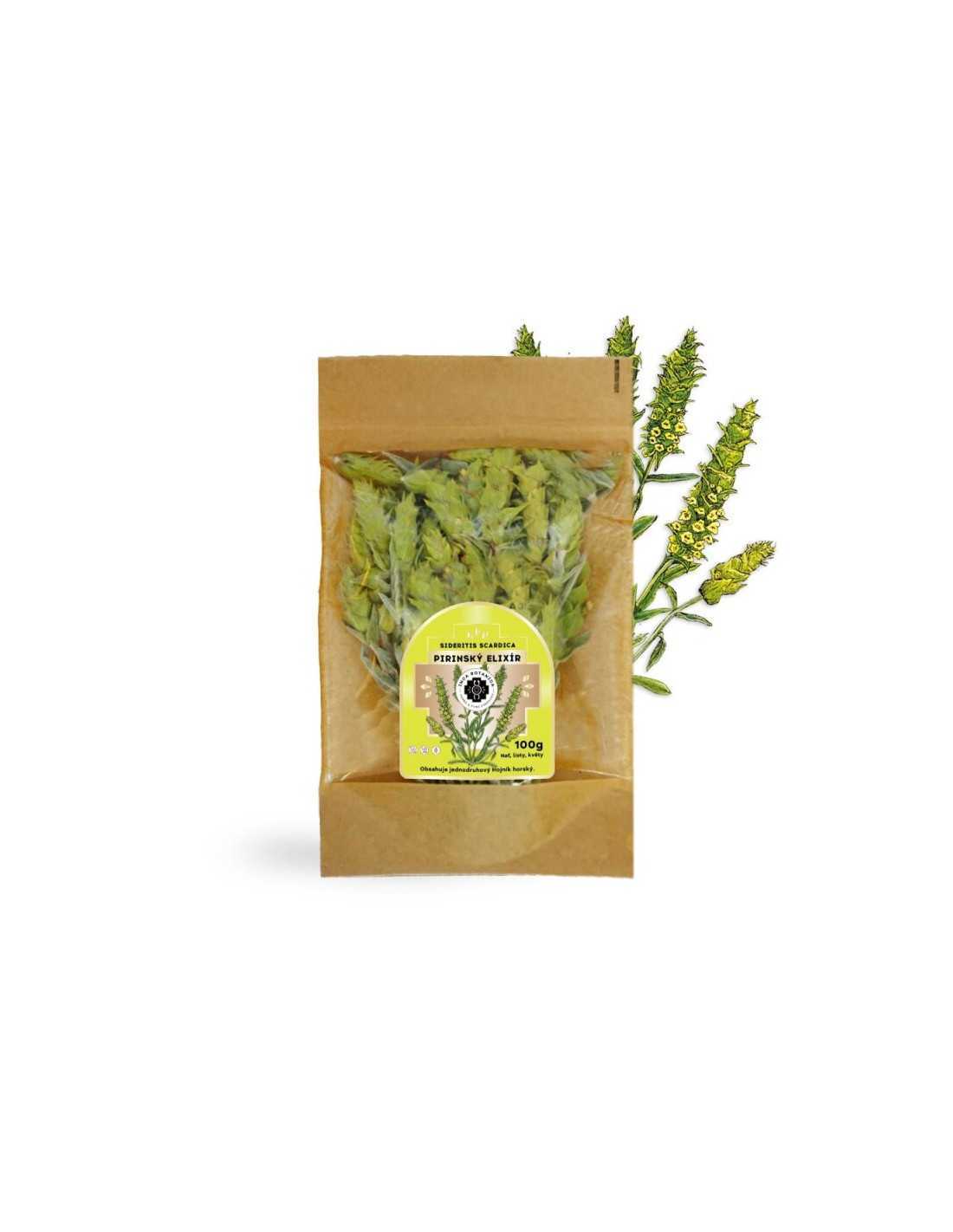 Řecký elixír – řecký horský čaj (Sideritis raeseri – herba) – obsahuje sušené nadzemní části rostliny určené k přípravě bylinného nálevu.